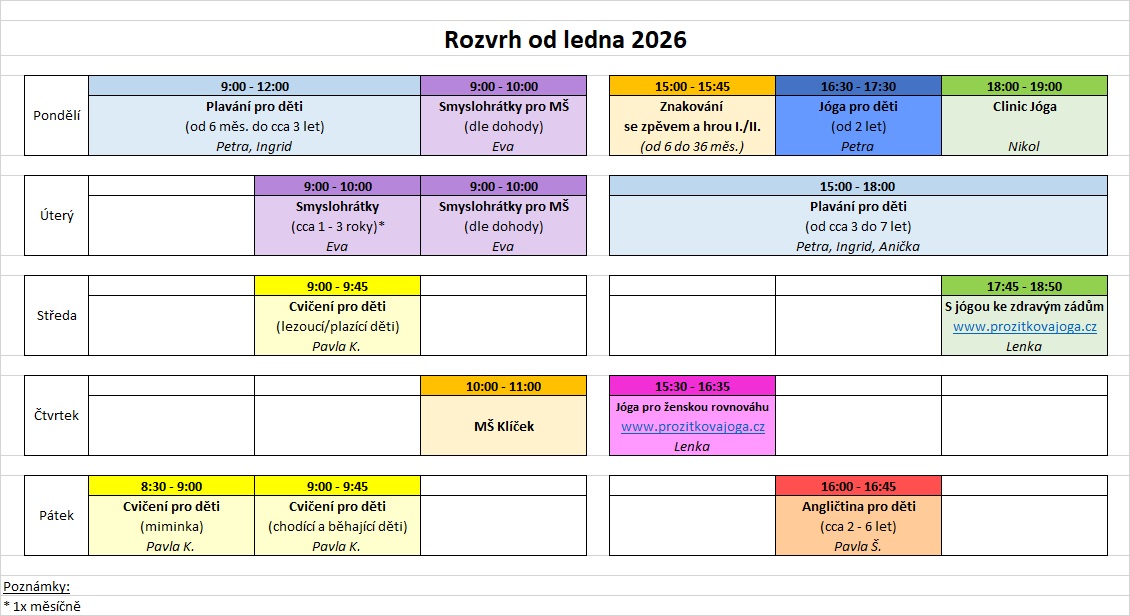 - pondělí (5.1. - 23.3.2026) = 10 lekcí + focení